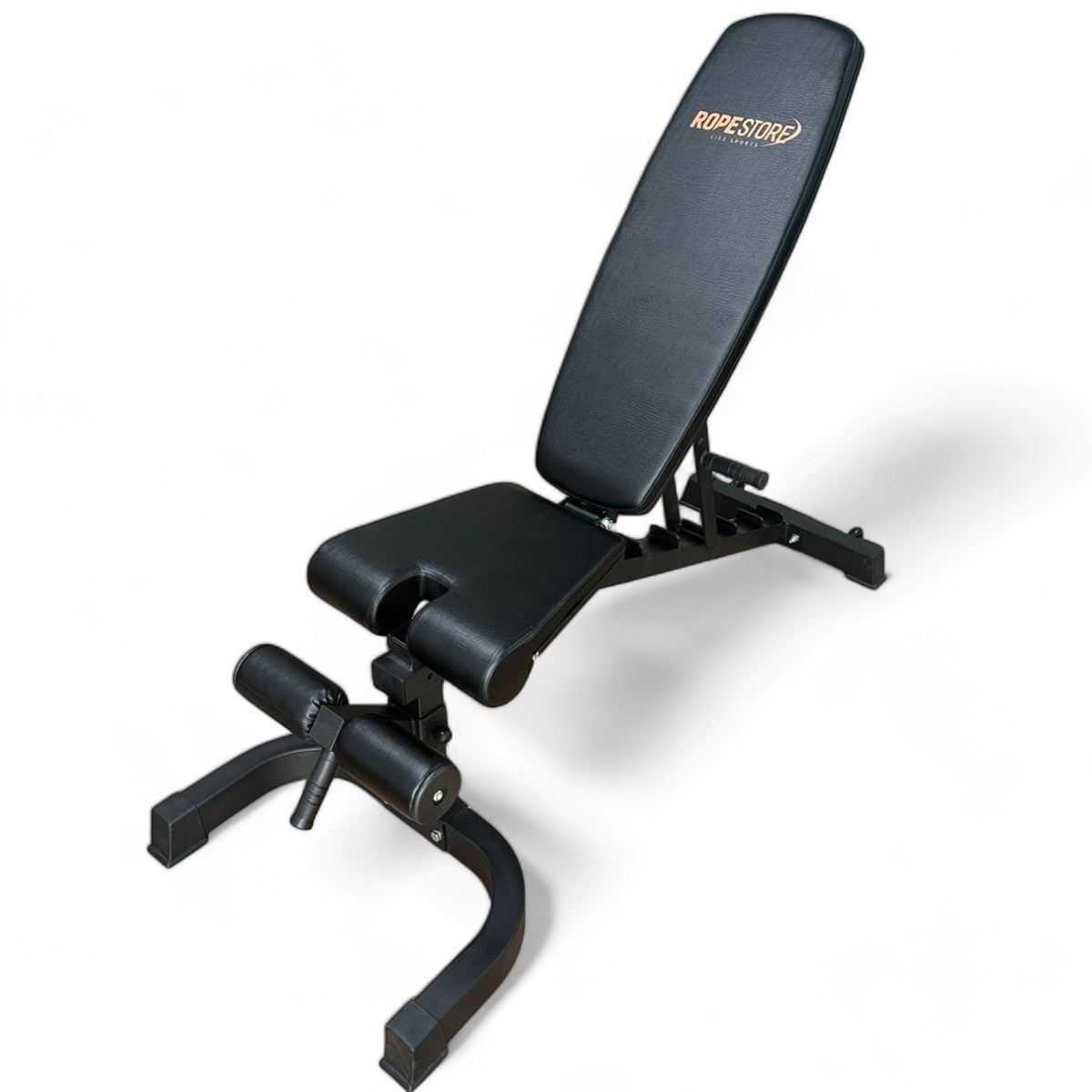 Banco Regulável Inclinado e Declinado Rope Store contém 8 opções de regulagem desde inclinado ou declinado, fabricado com metalon reforçado e pintura a pó para melhor acabamento, contém rodizio para movimentação facilitando o movimento do equipamento na sua academia.