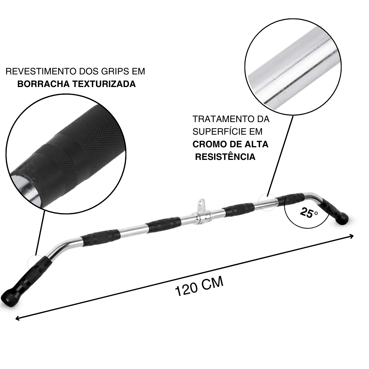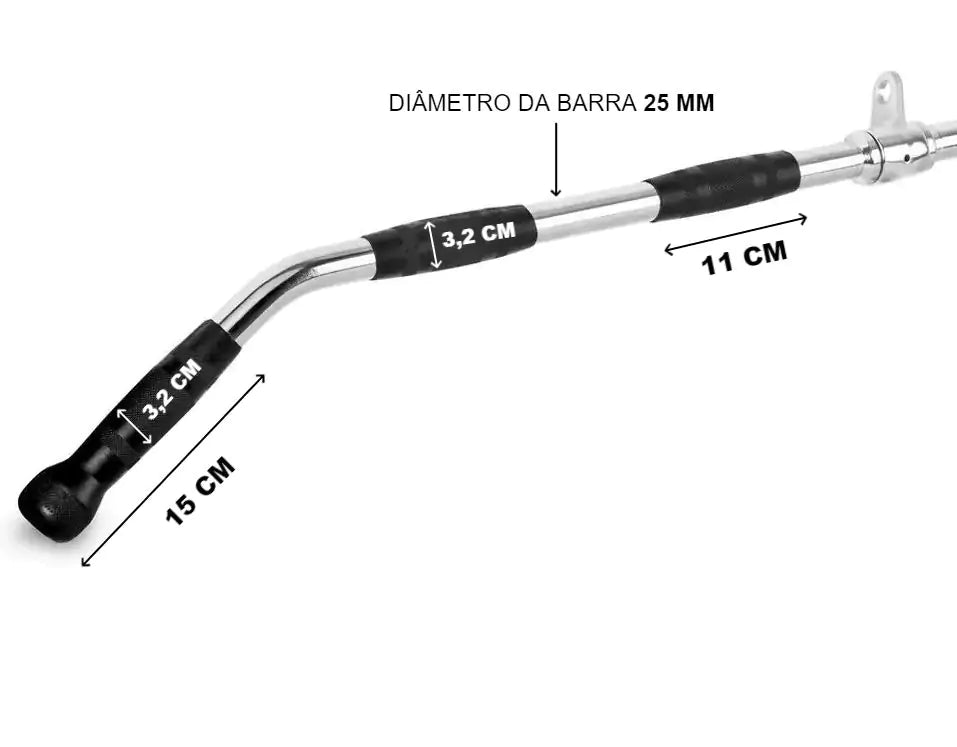 Treine com melhores os equipamentos do mercado e qualidade esse acessório tem sua principal função treinar a parte superior do corpo essa barra tem 1,20 metros de comprimento pesando 5 kg, possui 3 posições de aderência exclusivas e ultra confortáveis para realmente atingir seus bíceps, tríceps e dorsais.